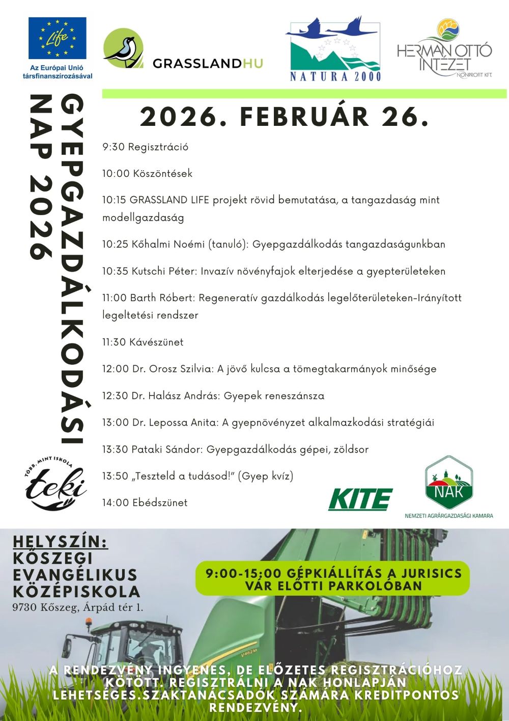 A részletes program itt érhető el. A program különösen hasznos lehet gyepterületeken gazdálkodóknak, állattartóknak, Natura 2000 területek kezelőinek és mindazoknak, akik felkészülten szeretnének reagálni a gyepgazdálkodás előtt álló kihívásokra.
