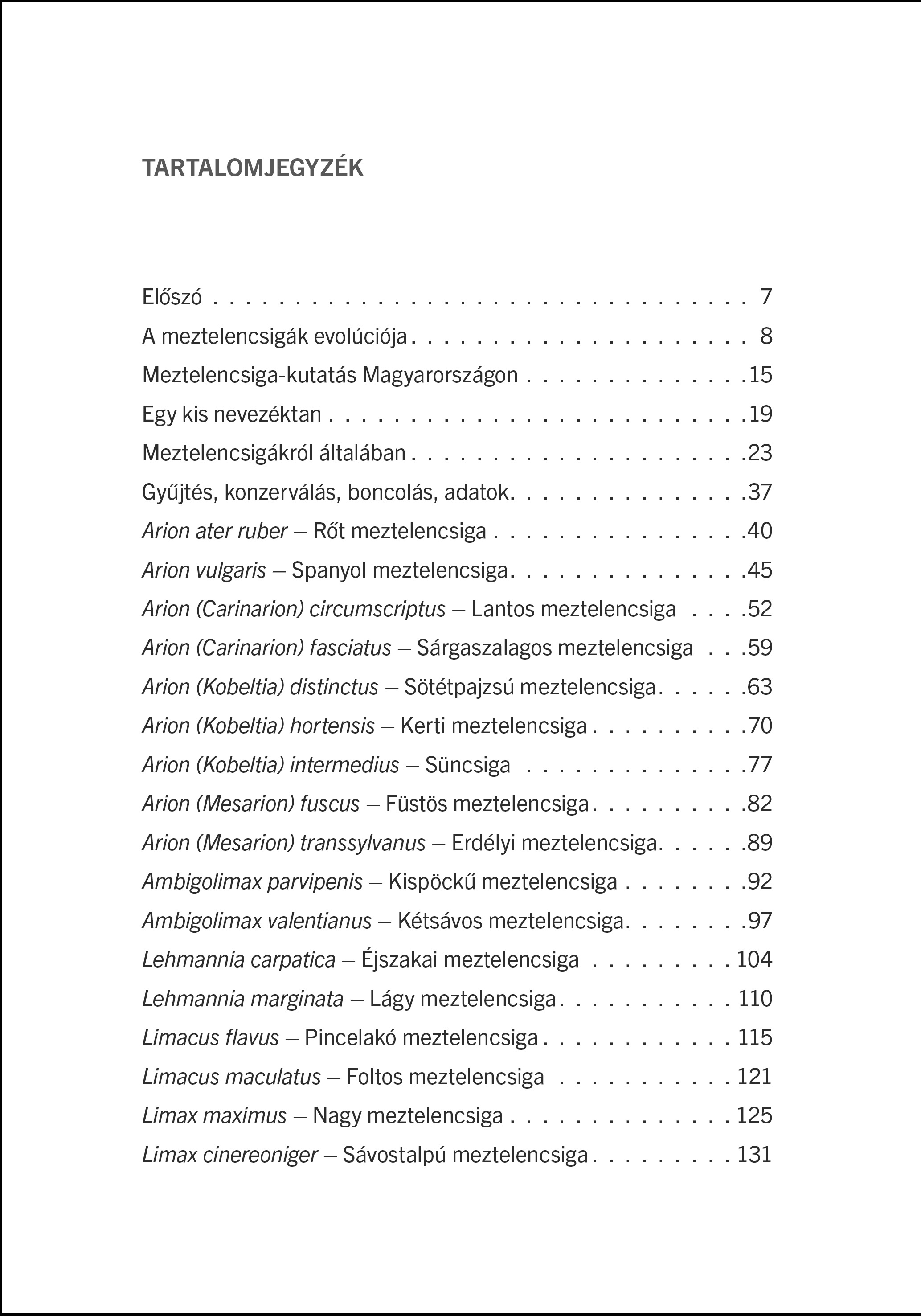 Bízunk benne, hogy ezzel a könyvvel árnyalni tudjuk a meztelencsigákról kialakult véleményt, és hogy egy-egy faj pontos azonosításával örömet okozunk az olvasóknak, legyen az hobbikertész, túrázó vagy kutatóbiológus.